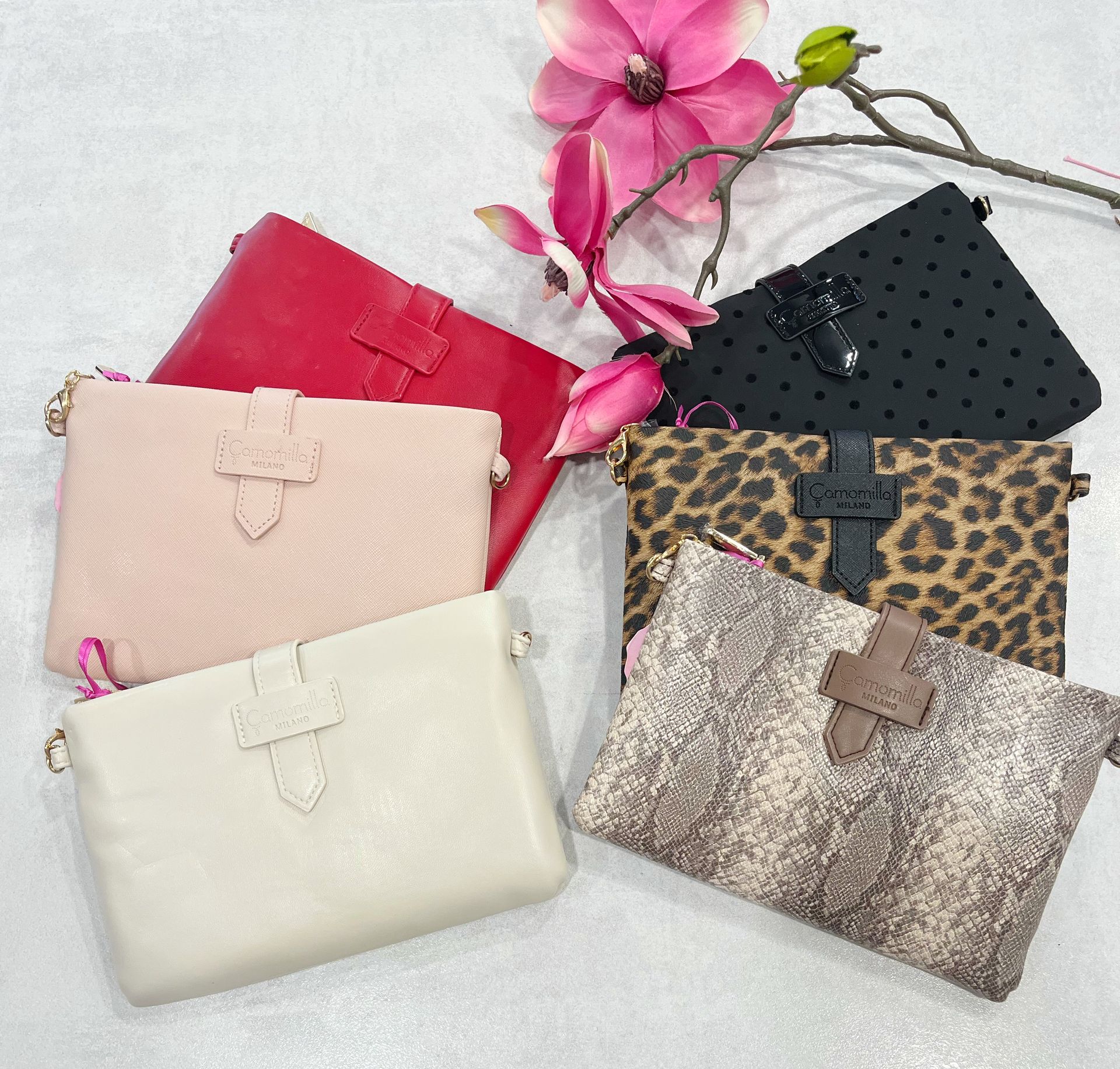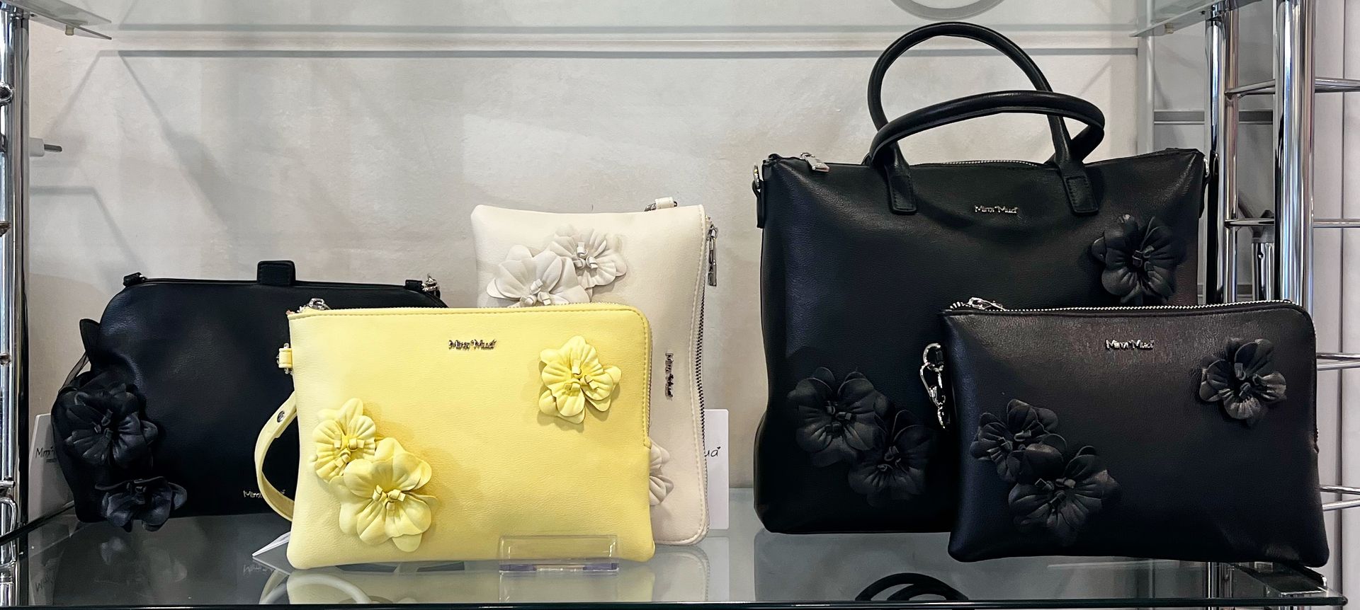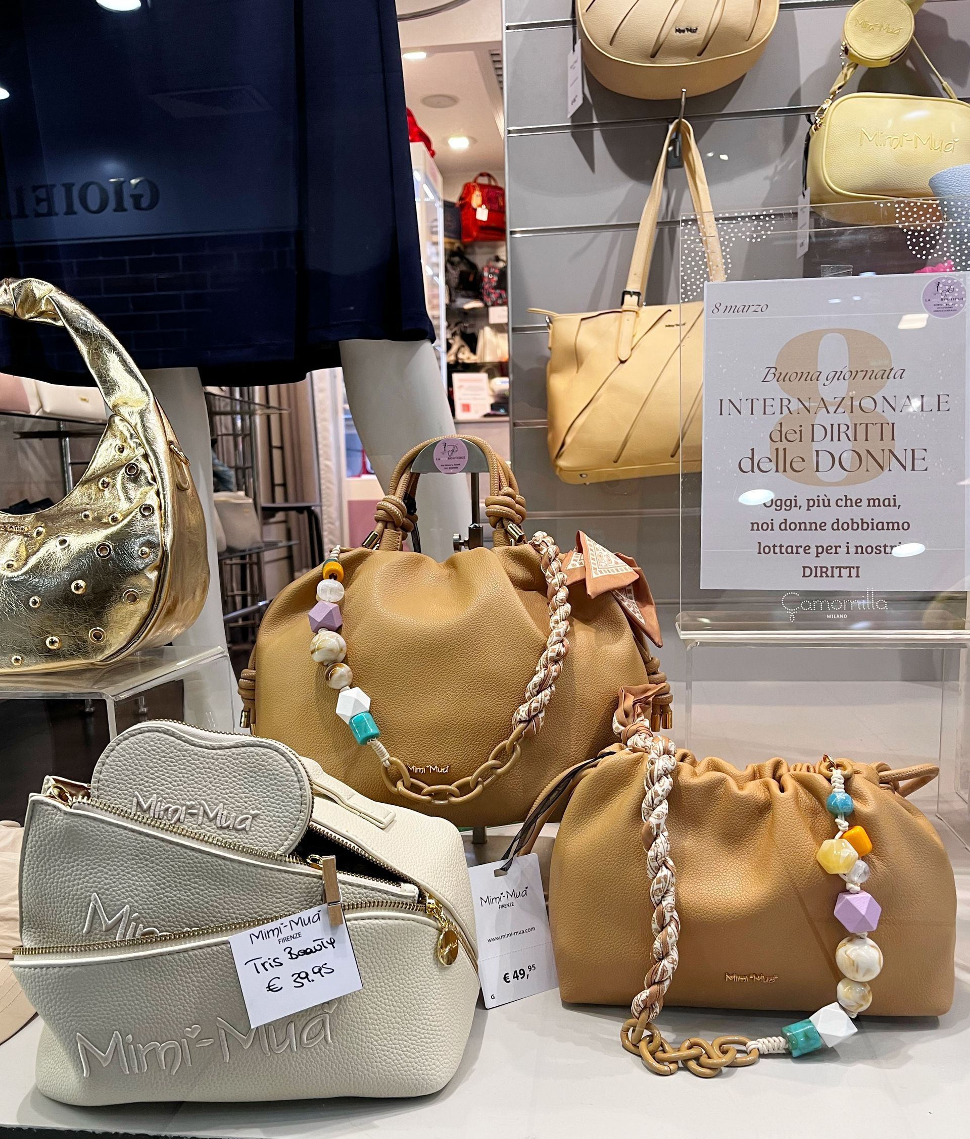 Le linee Mimi-Muà e Camomilla sono la massima espressione della moda del momento con modelli adatti ai diversi gusto ed esigenze: dalle borse grandi, pratiche e leggere, perfette per l'ufficio, a quelle più piccole ed eleganti per eventi serali.